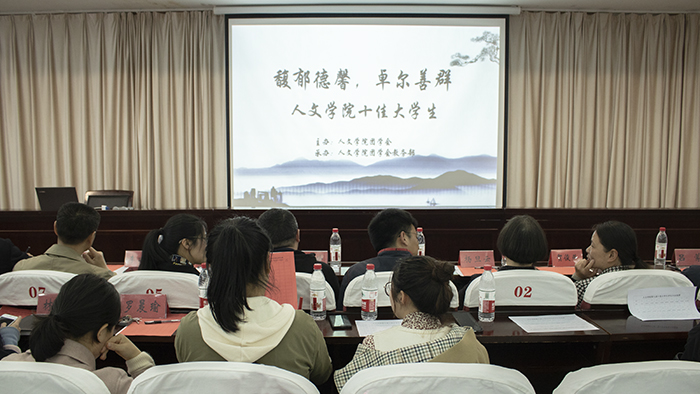 4月16日晚,9428cn太阳集团古天乐“馥郁德馨 卓尔善群”第九届老员工评选会在临海校区学术报告厅举行。9428cn太阳集团古天乐经理李建军、党总支书记郑丽君,党总支副书记林霖及各年级辅导员、班主任担任专家评委,各班班长、团支部书记等担任大众评委。