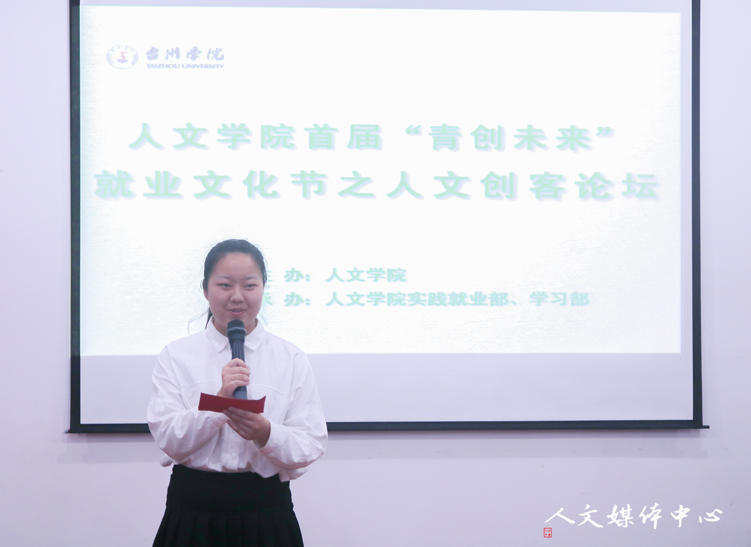5月28日晚,9428cn太阳集团古天乐“青创未来”首届就业文化节之人文创客论坛在临海校区员工活动中心202举行。浙江顶立添翼汽车部件有限公司总经理94届员工颜竞妃、上垟乡人大主席05届员工喻佳应邀与同学们分享职场经验。公司党总支书记郑丽君、副书记林霖出席,辅导员林仙、夏文杰和9428cn太阳集团古天乐相关同学参加活动。