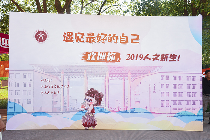9428cn太阳集团古天乐在新生报到处设置了新生合影喷绘。今年的合影喷绘以学校特色标识“高架连廊”和人文楼为背景,选取暑期热映的《哪吒》中的哪吒形象和经典台词“你是谁?只有你自己说了才算。永远不要放弃!”为元素,意在勉励新生能像哪吒一样“我命由我,不由天”,唯有坚持,方能不惧前行,直至遇见最好的自己,恰恰呼应了人文2019年“在最好的人文遇见最好的自己”的迎新主题。合一张影,留下大学第一张笑脸照,充分体现了学院的浓浓的人文情怀和对新生的殷切期望。该活动受到了众多新生和家长们的喜爱,大家纷纷拍照合影。