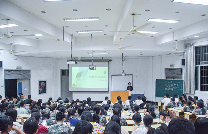 9月16日晚,公司党总支书记郑丽君在A4教室为2019级人文新生上了首堂党课《重温红色记忆,传承红色精神》,全体新生聆听党课。