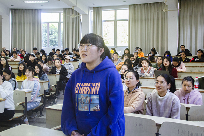 活动伊始,潘宁宁强调了学习和养成良好习惯的重要性,同时,积极向上的寝室环境、班级氛围也有助于提高自身学习效率。她鼓励同学们课余时间勇敢尝试,积极参与社会实践活动以及各类比赛,在活动中锤炼自我,在尝试中明确自我的方向与定位。此外,课下要多与老师沟通交流以开阔眼界、提升自我。结合自身经历,潘宁宁提出成功并非一蹴而就的,需要从大一开始积累和努力。问答环节,在座的同学踊跃提问,现场气氛热烈。潘宁宁建议同学们在大一、大二期间不断尝试,开拓领域,而大三、大四期间则需自我反思,清楚地认识自我,找到适合的领域,参与更高层次的比赛,将专长化为优势。