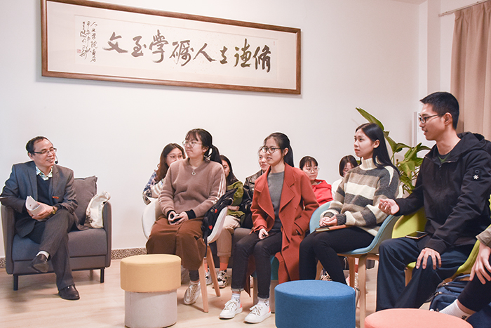 在互动环节,张天星老师摈弃了书山仰止惯常模式,以师生交流环坐式分享替代传统教师主导课堂式灌输。同学们被热烈气氛所感染,纷纷提出疑难问题寻求老师解答。围绕好汉何以不好色的问题,张老师从时代特征、主流价值观两方面进行解答,他强调在古代男权社会中,红颜祸水是基本思想,因此英雄们认为万恶淫为首,置情欲于身外。
