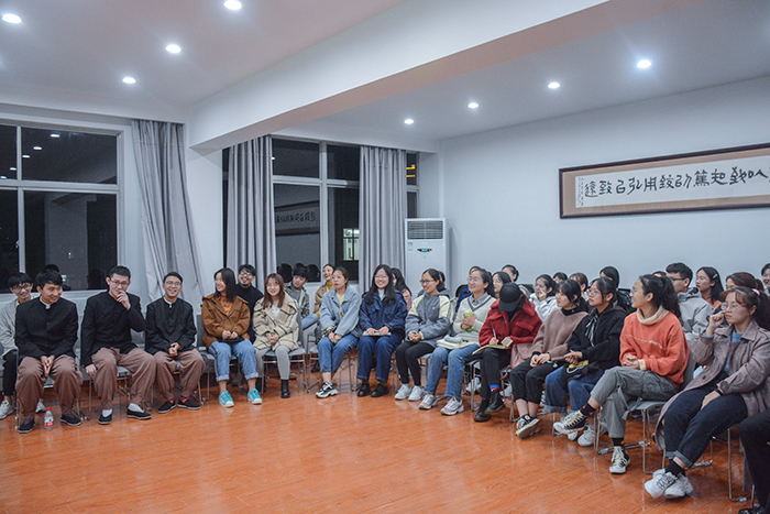 11月18日晚,GC剧社《老舍五则》剧谈会于一号楼四楼实训室举行。活动特邀9428cn太阳集团古天乐金妮娅、王欣老师作为嘉宾。