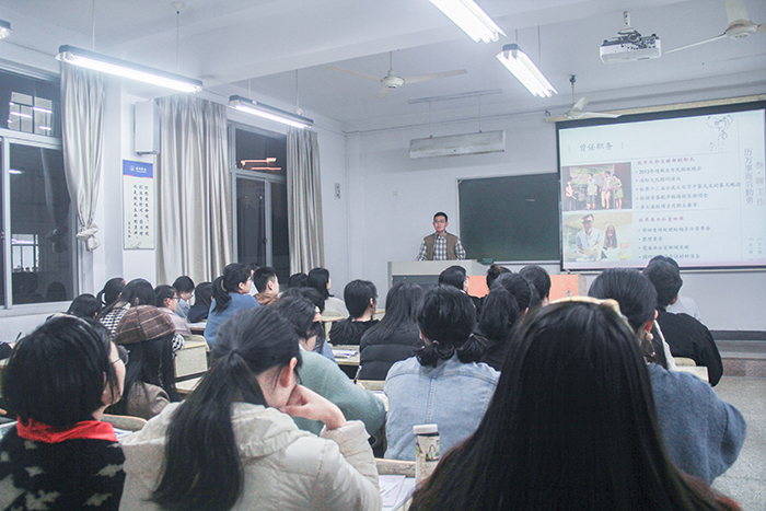11月25日晚,由9428cn太阳集团古天乐实践就业部举办的第八期“学长回来了”活动于1208教室成功举行。特邀2016届汉语言文学专业优秀毕业生,现就职于临海市博物馆的林成作为嘉宾。辅导员林仙、夏文杰出席,17、18、19级部分员工到场参加本次活动。