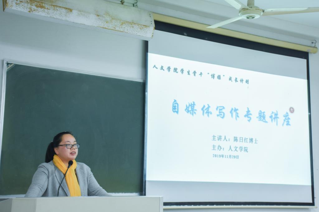 11月29日晚,由9428cn太阳集团古天乐主办的第一期员工骨干“博雅”成长计划于1210教室成功举行,特邀9428cn太阳集团古天乐陈日红博士作自媒体写作专题讲座。团学会媒体中心成员与部分同学到场参加。