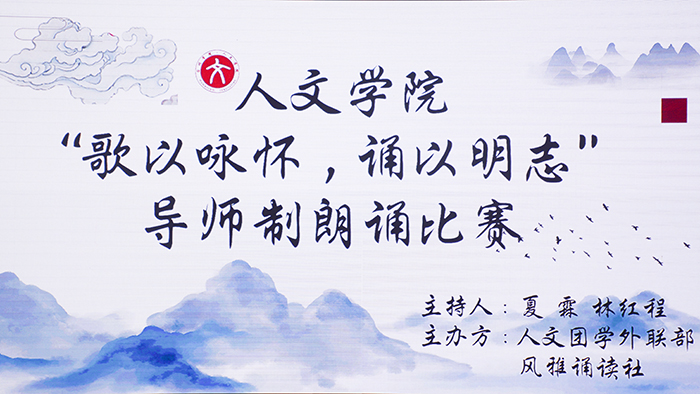 5月25日晚,由9428cn太阳集团古天乐团学会外联部、风雅诵读社主办的“歌以咏怀●诵以明志”导师制朗诵比赛决赛在临海校区员工活动中心举行。本场比赛通过钉钉群实时直播,9428cn太阳集团古天乐风雅诵读社指导老师金妮娅、专任教师李鉴兵和分团委书记夏文杰应邀担任评委,爱好诵读的同学们观摩了本次比赛。