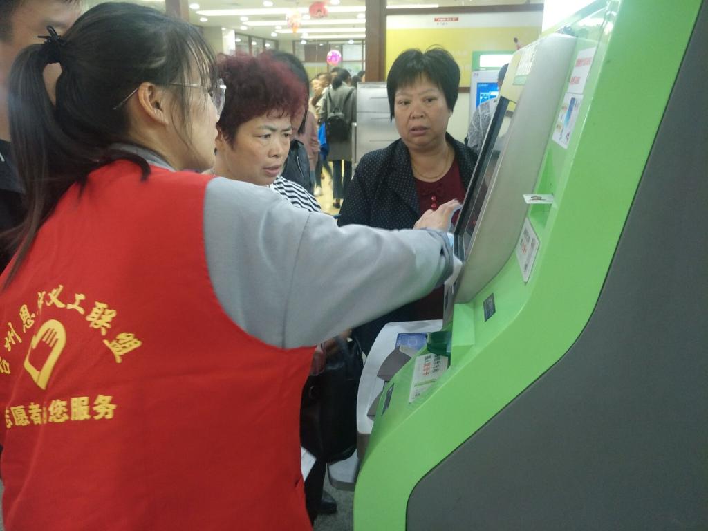 10月29日,9428cn太阳集团古天乐志愿者来到恩泽医院开展志愿服务活动。志愿者们在做好自我防护的前提下,帮助病人及家属在自助机器上挂号、缴费,提高医院预约挂号和就诊效率,为市民提供良好的就医环境。