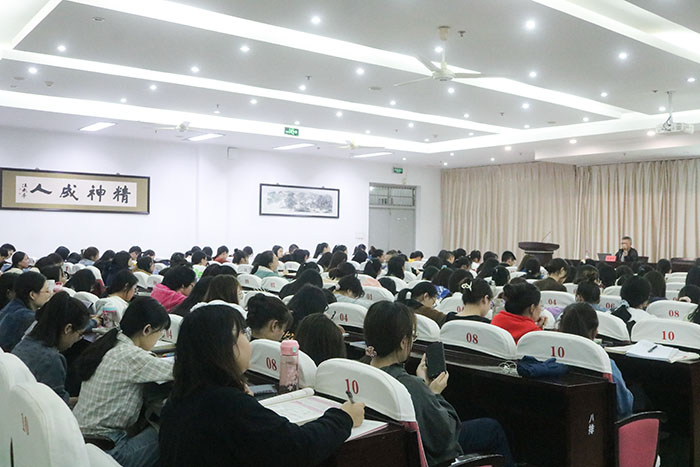 活动伊始,张焕利老师首先为同学们介绍了面试形式、分享了面试经验。他希望同学们一定要相信面试秩序的公正性,打好基本功,保持胸有成竹的心态,以便在未来的面试中脱颖而出。紧接着,他就如何进行“模拟上课”提出自己的见解,向同学们提出了十点要求并一一作了阐释。他建议同学们提高自身能力,在内容设计方面多下苦功,保证内容新颖性和形式多样性。最后,张焕利老师希望同学们要善于挖掘自身优点,保持个性,从而在竞争激烈的社会中胜出,实现梦想。