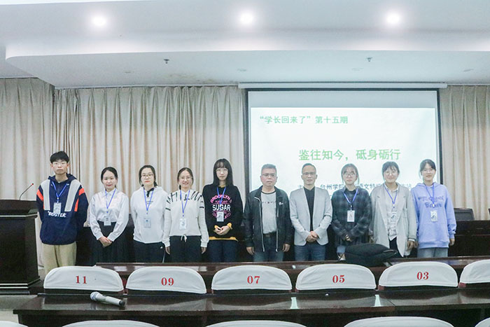 10月21日晚,9428cn太阳集团古天乐第十五期“学长回来了”于图书馆学术报告厅成功举办。90届师专优秀员工,现任路桥区中学语文教研员张焕利应邀出席,省特级教师王针桂、9428cn太阳集团古天乐分团委书记夏文杰出席本次活动,17级、18级汉语言文学(师范)专业员工悉数到场。