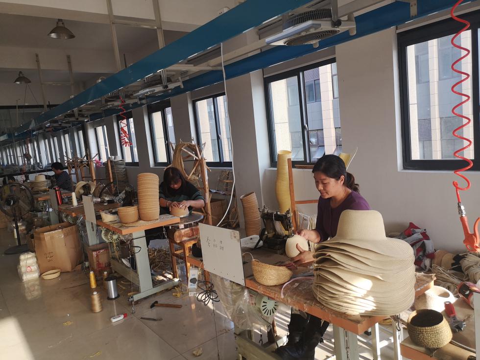 挂牌仪式后,双方来到展厅,陈真向参与合作的老师们展示了现代草编的精美产品,介绍了草编艺术的流行时尚以及草编产品的创新发展与海外销售情况。大家还兴致勃勃地来到生产厂房了解了草编产品的生产和工艺流程,参观了中国进出口交易会现场直播厅。接着双方就具体合作事宜及实习就业基地建设进行了详细沟通和交流。