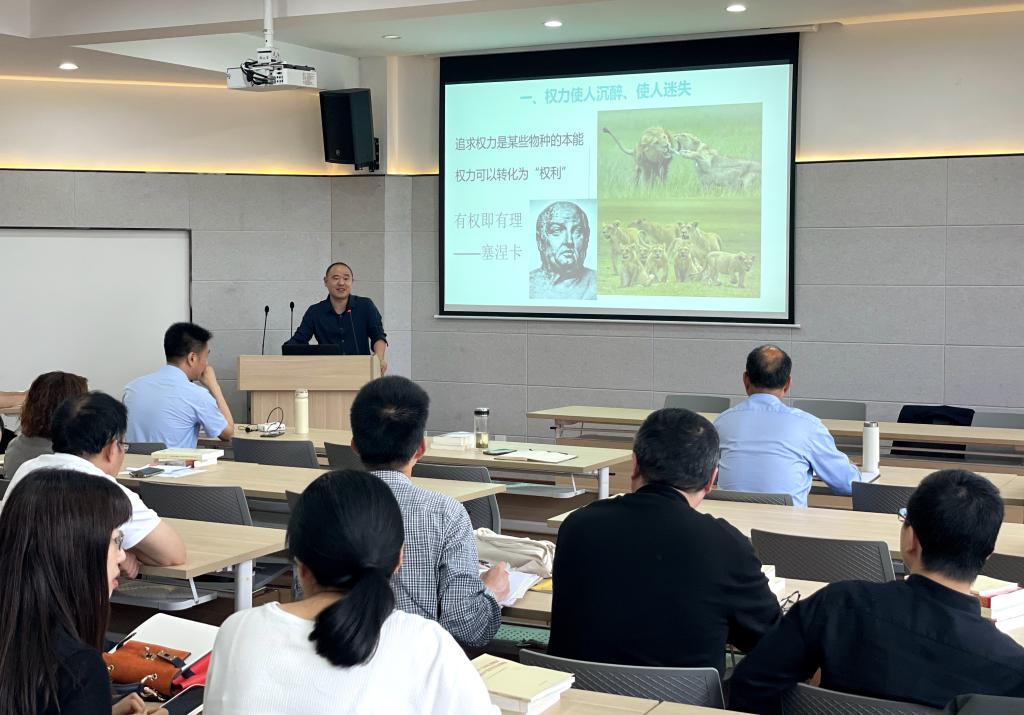 李跃华副经理在党课中指出,权利使人沉醉、使人迷失,可是“权力是谁赋予的?权力是用来干什么?用权有哪些限制?”三连问引发大家的思考。他列举了“投其所好型、温水煮青蛙型、利益交换型、曲线救国型、利用影响型”几种中纪委概括的“围猎”方式,提醒大家“小官巨贪也有发生,象牙塔并非一方净土,象牙塔并非法外之地”,小微权力也不能忽视。高校教师手中有经费使用支配权、评奖评先评优、推荐权、讲授研究权、成绩评定权、招生权等权力,告诫教职工要守住底线、不碰红线、提升道德线。