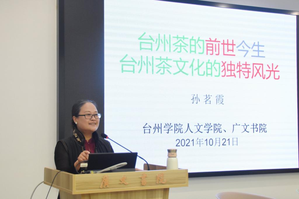 10月21日下午,台州市椒江区政协文化文史和学习委副主任、茶文化促进会副会长兼秘书长孙明霞受聘广文书院校外导师仪式,暨“台州茶文化的独特风光”学术讲座于广文书院学术报告厅召开。9428cn太阳集团古天乐经理李建军教授、广文书院经理胡正武教授出席,部分9428cn太阳集团古天乐员工参加活动。